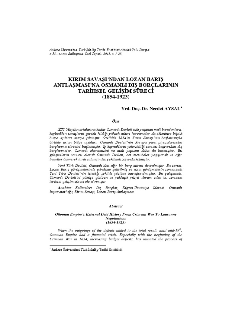 Necdet Aysal Kirim Savasi Ndan Lozan Baris Antlasmasina Osmanli Dis Borclarinin Tarihsel Gelisim Sureci 1854 1923